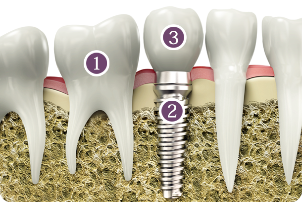 echt: Zahnimplantate Implantate – endlich eine Lösung, um fehlende Zähne zu ersetzen und Ihr wunderschönes Lächeln wiederzugewinnen. Möchten wir nicht alle kraftvoll zubeißen, anderen mit einem schönen Lächeln begegnen, selbstbewusst und zufrieden durch den Tag gehen? Mit fehlenden Zähnen fühlen Sie sich möglicherweise unsicher und befangen. Gemeinsam mit Ihnen suchen wir nach der für Sie idealen Möglichkeit Ihr Lächeln wiederzugewinnen. Fehlende Zähne können heute auf vielerlei Weise ersetzt werden. Implantate erweitern dabei unsere Möglichkeiten und kommen dem Gefühl eines eigenen, natürlichen Zahnes am nächsten. Was versteht man unter einem Zahnimplantat? Ein Zahnimplantat ersetzt im wesentlichen die natürliche Zahnwurzel und dient als Grundgerüst für einen künstlichen Zahn. Das Implantat verleiht dem sichtbaren Anteil der Zahnkrone die notwendige Stabilität, um wieder kraftvoll zubeißen zu können. (1) natürlicher Zahn (2) Implantat (3) Zahnkrone ![]() Warum Zahnimplantate? Es gibt viele Gründe, die für die Versorgung mit einem Implantat sprechen. Dazu gehören die natürliche Ästhetik, der Erhalt des vorhandenen Knochens und die Schonung benachbarter Zähne. Gerne erklären wir Ihnen die Vorteile dieser Versorgung und die möglichen Alternativen an Ihren eigenen Zähnen. Sprechen Sie uns auf Ihren Versorgungswunsch an! |